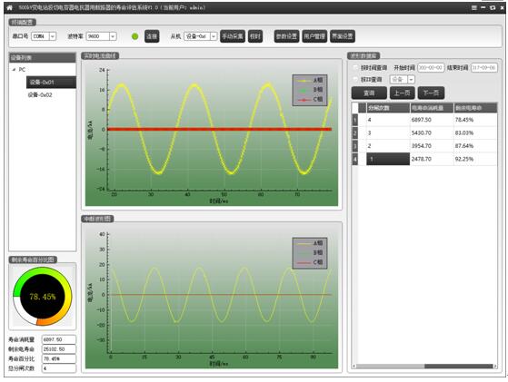 系统所监测断路器可根据实际情况进行增减,可人工设定断路器的型号、额定开断电流值、额定开断次数、初始寿命等基础数据。