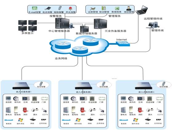 伊能机房监控系统根据用户对各机房统一管理的需求,能对各不同类型的设备实现集中监控,包括对机房动力系统(包括发电机、配电柜和UPS等)、环境系统(机房精密空调、非精密空调、漏水检测、温湿度监测等)、安防系统(门禁、入侵报警等)。实现了机房设备的统一监控,智能化实时语音电话报警,实时事件记录;减轻机房维护人员负担,有效提高系统的可靠性,清楚处理各种事件关系,实现机房可靠的科学管理。